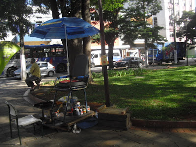 No caminho, quando o orvalho era só orvalho, um senhor à minha frente parou perante um arbusto, arrancou um pequeno galhinho com umas três ou quatro folhinhas, colocou no bolso e arrancou numa corrida surpreendente. Devia ser mágico aquele arbusto. Com inveja, pensei em arrancar também umas folhinhas, mas naquela escuridão fiquei com medo de confundir os arbustos. Vai que eu arrancasse um com efeito tartaruga.
