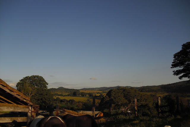 E por falar em sereno, hoje eu comecei a caminhada e já me deu calor, tive que tirar o cachecol e amarrar na cintura. De repente comecei a sentir delicadas gotinhas tocando o meu rosto. Sereno, porém prefiro orvalho. O orvalho a me beijar a face. Que poético, pensei.